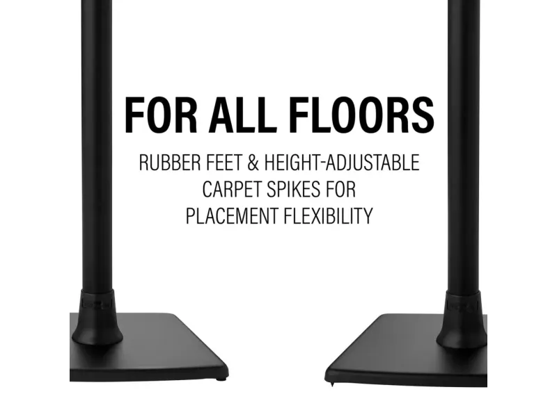The Sanus WSSE11 speaker stand combines functionality with aesthetic appeal. Designed for floor-standing placement, this stand is suitable for any speaker setup, ensuring your audio system looks as good as it sounds. Its steel construction provides durability and stability, while its adjustable feet and included rubber pads adapt to any surface, ensuring your speakers remain securely in place. The integrated cable management system keeps wires neatly organized, contributing to a clean look. Capable of supporting speakers up to 2.2 kg, the Sanus WSSE11 can accommodate a wide range of audio equipment. Assembly is straightforward with all necessary components included, allowing for an easy setup. Enhance your audio experience with the Sanus WSSE11, where design meets functionality.