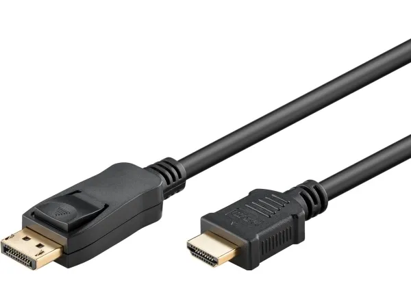 DisplayPort male (1.2) > HDMI connector male (type A) (2.0) Goobay provides the perfect electronic accessories to connect your PC or laptop to an external screen. Our products transmit top-quality signals for a razor-sharp picture. The robust construction and high-quality materials of our cables, adapters, converters and plugs create an impressive picture. Simply. All. You need!Goobay DisplayPort to HDMI Adapter Cable, 2 m. Cable length: 2 m, Connector 1: DisplayPort, Connector 2: HDMI Type A (Standard). Cable diameter: 5 mm. Package type: Polybag. Quantity per pack: 1 pc(s)