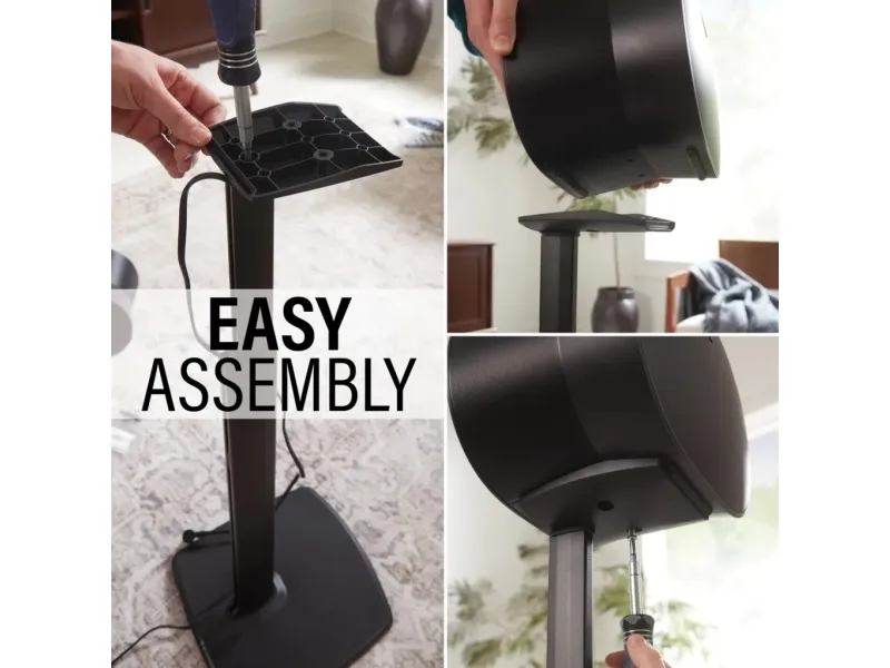 Elevate your audio experience with the Sanus WSSE32 speaker stand. Designed for durability and stability, this stand is constructed from high-quality extruded aluminum and steel, ensuring your speaker is securely supported. The fixed design, complemented by adjustable and rubber feet, ensures stability on various floor types, from hardwood to carpet. The Sanus WSSE32 stands out with its integrated cable management system, allowing for a clean and organized setup by neatly routing and concealing wires. Assembly is made simple with the inclusion of all necessary components, ensuring a hassle-free setup. Whether you're enhancing your home theater or upgrading your audio system, the Sanus WSSE32 speaker stand is a reliable and stylish choice.
