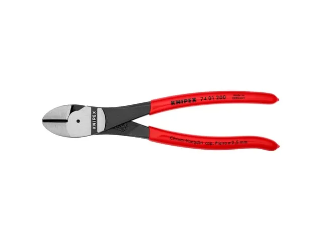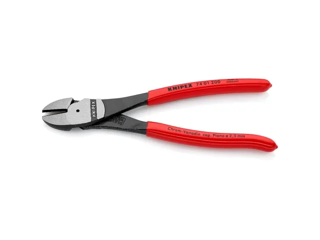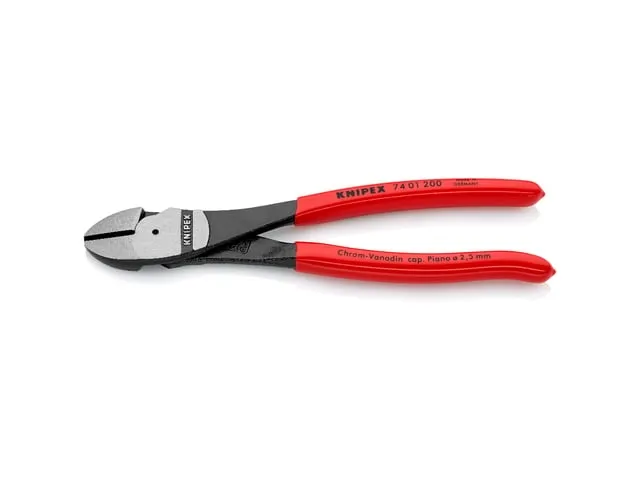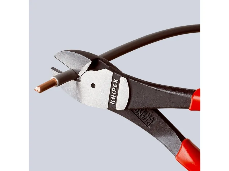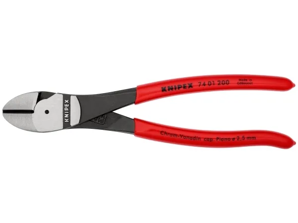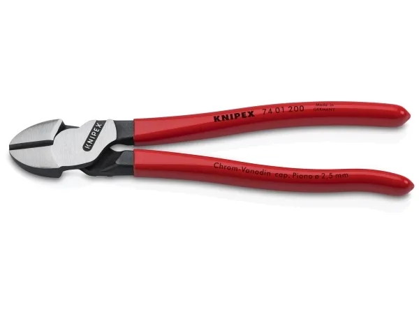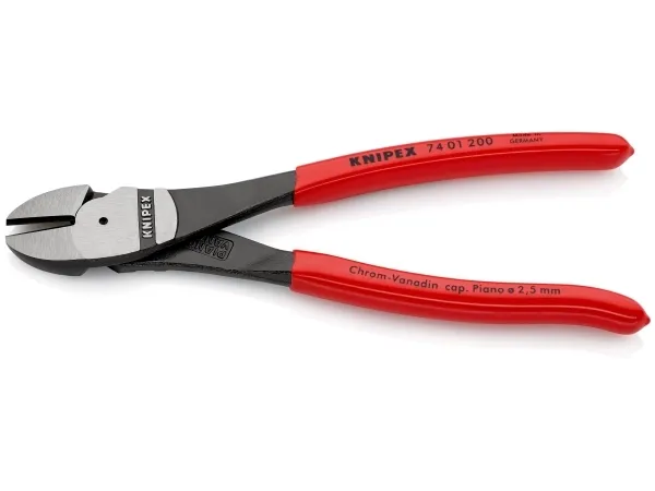 - for very tough, continuous use\n- high cutting performance with minimum effort due to optimum co-ordination of the cutting edge angle and transmission ratio\n- precision cutting edges additionally induction hardened (cutting edge hardness approx. 64 HRC), for all sorts of wire including piano wire\n- Chrome vanadium heavy-duty steel, forged, oil-hardened