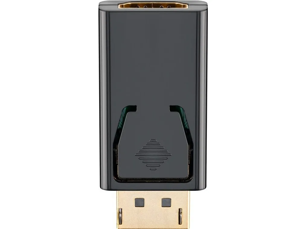 DisplayPort™ male > HDMI™ female (Type A) Color version Goobay adapter transmits HD video and audio signals from a computer to a screen Signal transmission with resolutions up to WUXGA (1920 x 1200p) DisplayPort-to-HDMI™ adapter as a simple solution for adding an external monitor (Plug & Play) Gold-plated connectors guarantee a perfect signal transmission, clear sound and razor-sharp video and picture quality. DisplayPort connector with mechanical connector lock for secure hold without loose contacts Signal transmission: from DisplayPort plug to HDMI™ socket