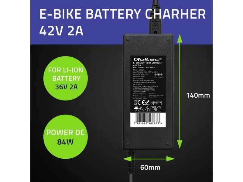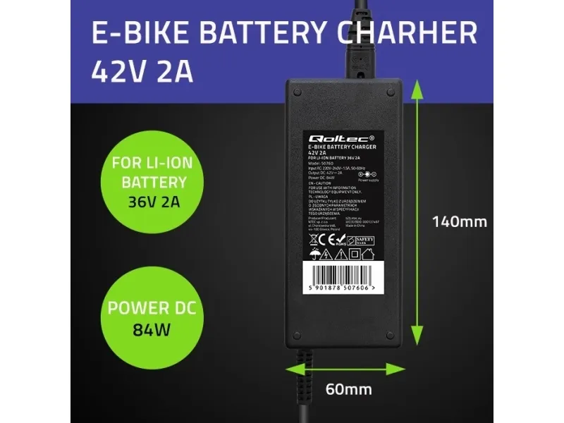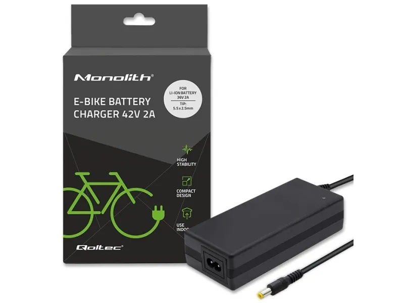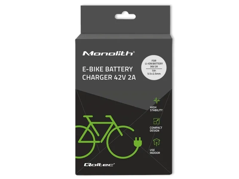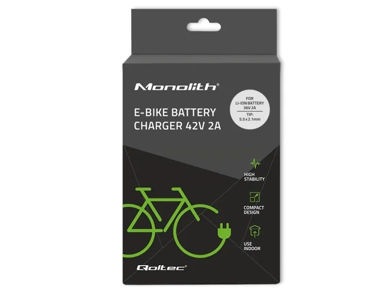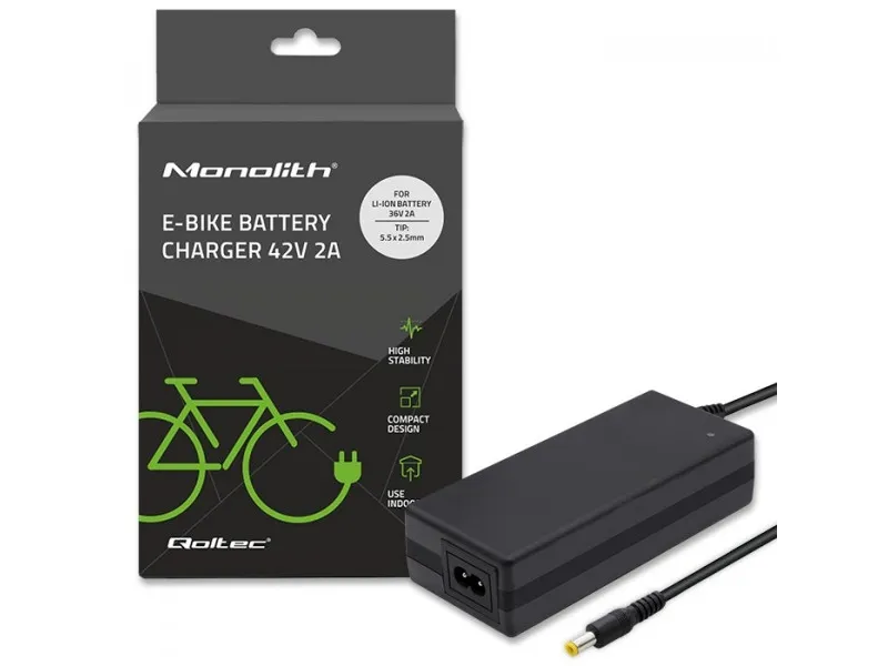 The Qoltec Monolith charger is a high-performance power adapter designed specifically for e-bike batteries. With its compact design, it is perfect for indoor use, fitting seamlessly into any environment. This charger delivers 84 W of power at 42 V to efficiently charge your e-bike batteries at 36 V and 42 V. Safety is a priority with the Qoltec Monolith, featuring overcharge protection to ensure your e-bike's battery is protected from potential damage. Whether you're charging at home or in the office, the Qoltec Monolith charger is the ideal solution for keeping your e-bike ready to go.