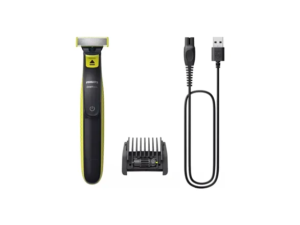 The Philips OneBlade QP2724 redefines the grooming experience by combining efficiency with convenience. This shaver is designed to suit all facial hair styles, offering stubble combs in three different sizes (1 mm, 3 mm, 5 mm) for personalized grooming. Its fully washable feature, coupled with a stainless steel blade, makes maintenance a breeze, allowing for a quick rinse under water to keep it clean. The OneBlade ensures you're always ready with 45 minutes of cordless operation after just an 8-hour charge, powered by a durable nickel metal hydride battery. Whether you prefer a dry shave for speed and convenience or a wet shave for that fresh, clean feeling, the Philips OneBlade adapts to your lifestyle, providing a comfortable shave with its ergonomic design. Embrace the flexibility and efficiency of Philips OneBlade QP2724 for a grooming experience that meets the demands of modern life.