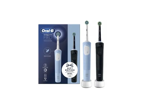 Oral-B Vitality Pro Duo, Adult, Rotating-oscillating toothbrush, Daily care, Sensitive, Super sensitive, Black, Blue, White, 7800 movements per minute, 4 x 30 sec