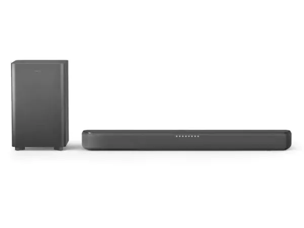Bring movies and more to life with this powerful soundbar and wireless subwoofer. Explosions will rumble. Music will sing. Games get more epic. Sophisticated audio technology creates an immersive sound experience no matter what you watch.Philips 5300 series TAB5309/10. Audio output channels: 2.1 channels, RMS rated power: 120 W, Audio decoders: DTS 5.1, DTS Virtual:X, Dolby Digital, Dolby Digital Plus. Soundbar speaker RMS power: 120 W, Impedance: 8 Ω, Total Harmonic Distortion (THD): 10%. Subwoofer type: Active subwoofer, Subwoofer connectivity: Wireless, Subwoofer frequency range: 40 - 150 Hz. Product colour: Grey, Colour name: Dark gray, Audio formats supported: FLAC, LPCM, MP3, WAV. Connectivity technology: Wired & Wireless