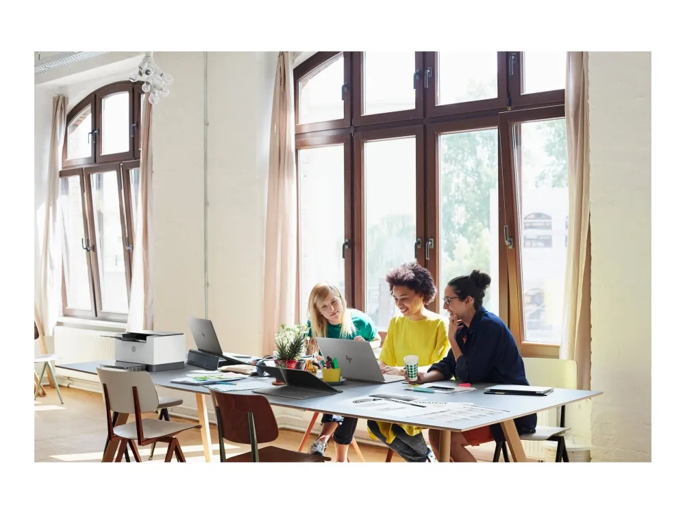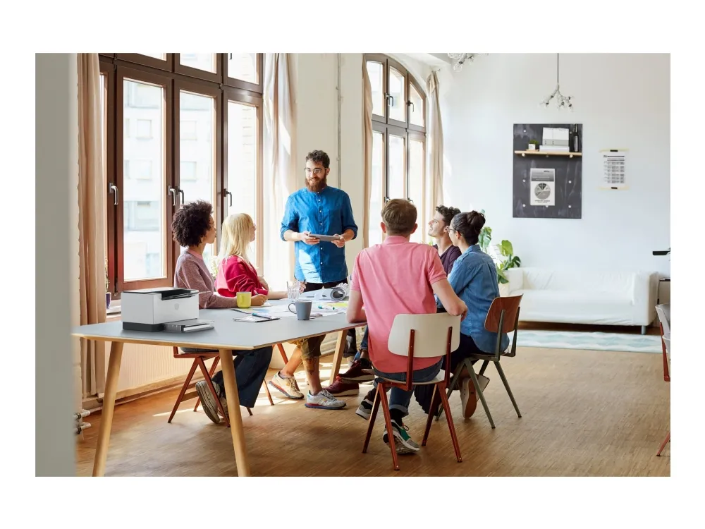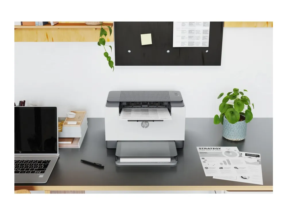 Super capable. Super compact. Increase productivity with this high-performance black-and-white printer in an award-winning compact design.[2] Experience the fastest two-sided printing in class[8] plus simplified setup and time-saving features with the HP app.[3]