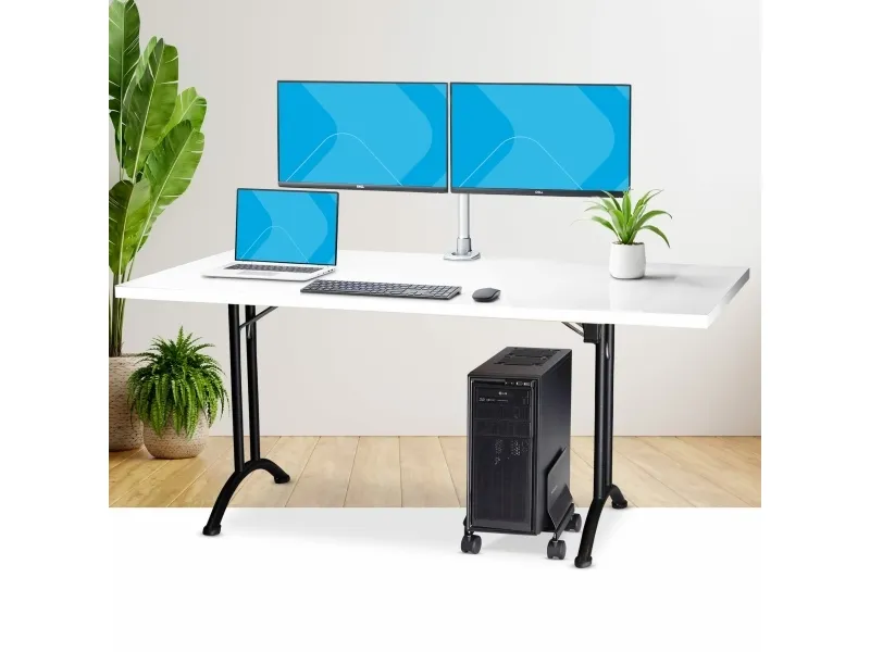 The StarTech.com Computer Tower Cart Rolling CPU Caddy is designed to enhance your workspace, allowing for ease of movement and accessibility. Constructed from sturdy steel, this cart provides durability and can safely support a maximum load weight of 21 kg. The four wheels ensure smooth rolling, making it suitable for positioning your computer tower wherever needed, whether at home or in an office environment. This caddy includes necessary assembly components, making setup straightforward and quick, allowing you to get organized without hassle.
