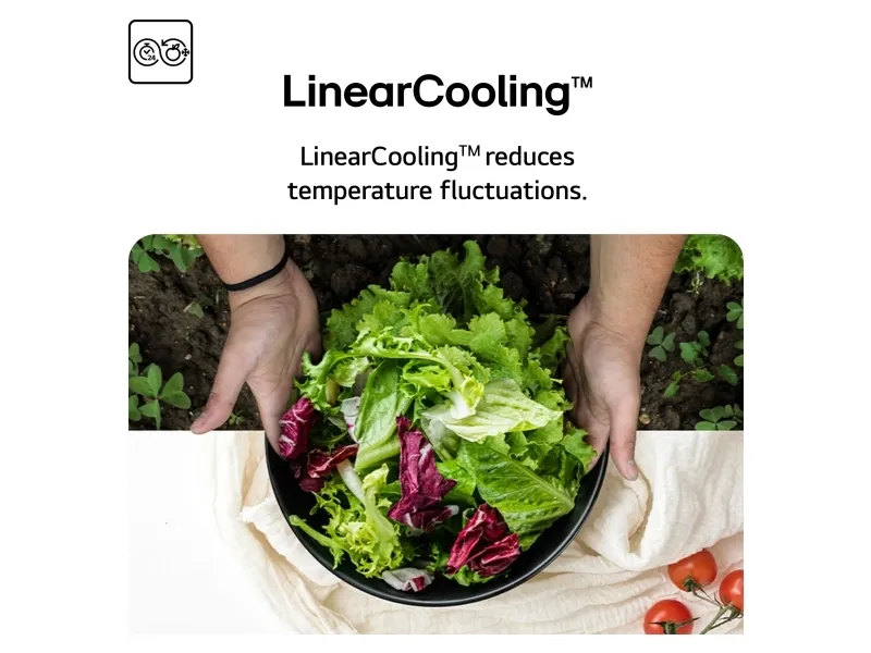 Linear Cooling™ Linear Cooling™ helps maintain relatively precise inner temperatures with the smaller fluctuation of ±0.5℃ over time by providing cold air inside more frequently than the conventional cooling system. This consistent cooling, working in tandem with LG's strategically located sensor, makes sure the temperature stays as close to your setting temperature as possible.