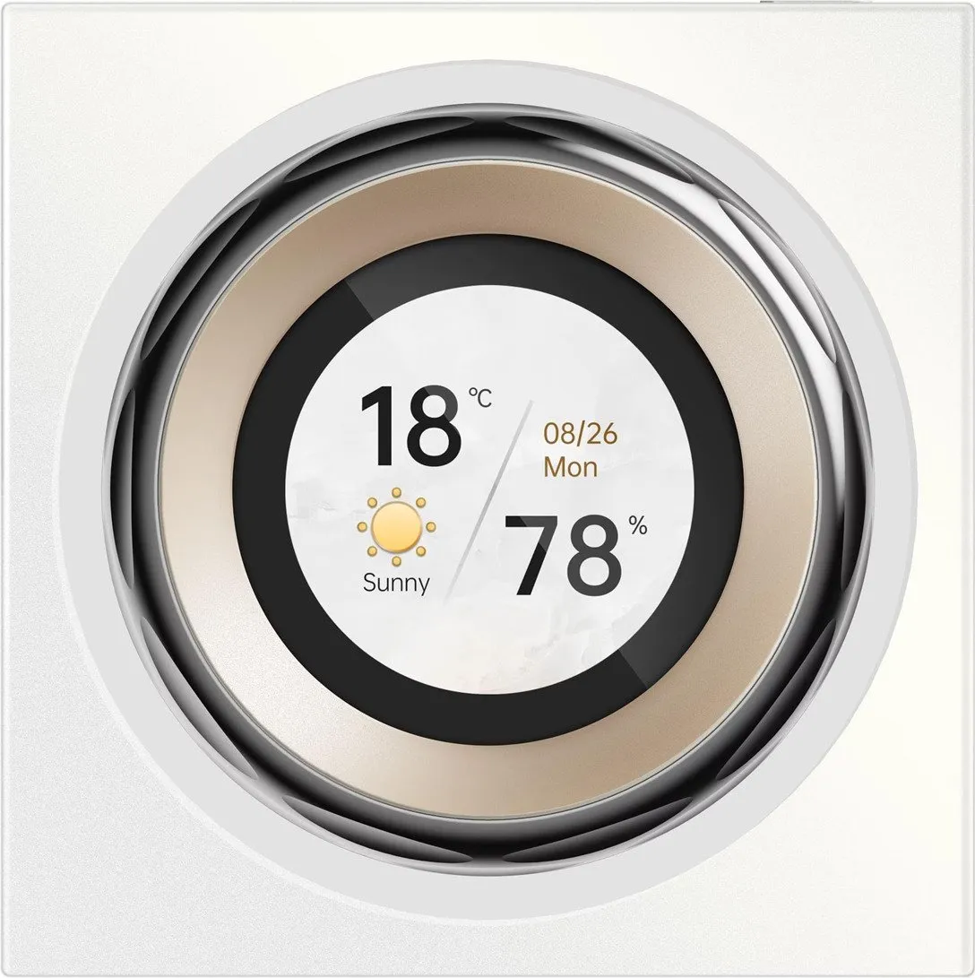 Aqara Touchscreen Dial V1 EU is a haptic feedback rotary dial wall switch with 2 relay switches and 6 wireless switches, paired with a 1.32-inch round touch screen, which can adjust the compatible Aqara device by sliding, clicking, and rotating. It achieves precise adjustment through its vibration and sound feedback. In addition, it has a variety of rich sensors that can monitor indoor temperature and humidity, and set the proximity activation function according to the actual size of the space to reduce light pollution. In addition, the switch seamlessly integrates with third-party ecosystems via Wi-Fi to achieve a more versatile smart home setup.