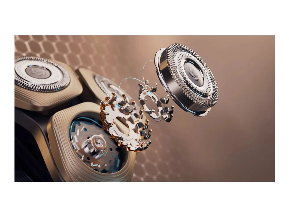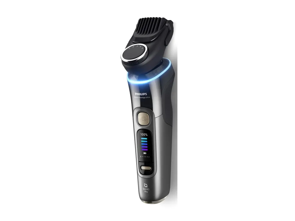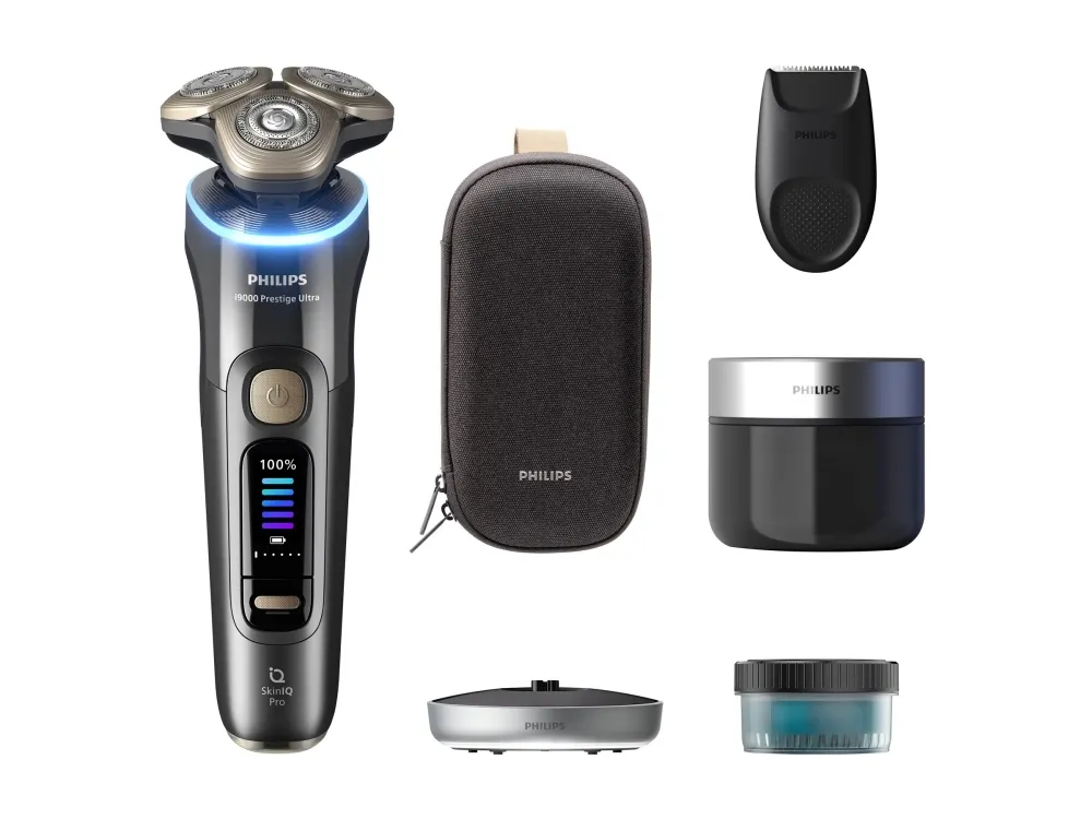 The Philips i9000 Prestige Ultra XP9402 offers a versatile grooming experience with advanced features tailored for effective performance. This shaver is equipped with NanoTech Dual Precision blades and a Hydro SkinGlide coating for a close and comfortable shave, whether used wet or dry. Along with the ergonomic handle design, it ensures an effortless handling experience while shaving. The SkinIQ Pro technology and Active Pressure & Motion guidance system enhance the adaptability of the device, making it easier to achieve a personalized grooming routine. Battery performance is optimized with a lithium-ion power source that provides 60 minutes of cordless operation after just a 1-hour charge. Featuring five shaving modes, the Philips i9000 is designed to meet various grooming preferences. It also comes with a Quick Clean Pod for easy maintenance and a storage case for convenience, ensuring that the shaver is always ready for use. Bluetooth connectivity allows for integration with the GroomTribe application, enhancing the user experience further.