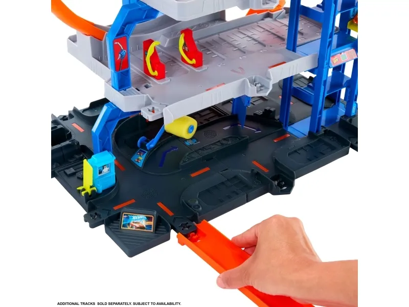 The Hot Wheels Mega Loop Garage playset has three levels of car-centered push-around play to engage young racers in imaginative storytelling and epic stunts. On the base floor of this multi-level set, kids can drive their car through a car wash that features a moving foam roller and wash curtain. Then, load the car into the lever launcher and send it into the double loop where diverters help to guide it to the desired floor. Use a kid-powered lift or use the car-carrying helicopter to transport vehicles to any level for parking. Extend the play using Speed Snap Track connectors. One Hot Wheels die-cast toy car and 1 toy helicopter are included. Additional vehicles and tracks are sold separately. Colours and decorations may vary.Hot Wheels City Mega Loop Garage Playset with 1 Die-Cast Toy Car & 1 Toy Helicopter in 1:64 Scale. Product type: Vehicle & track set, Recommended age (min): 4 yr(s), Recommended age (max): 5 yr(s), Material: Plastic, Product colour: Multicolour
