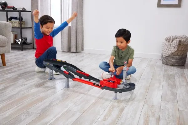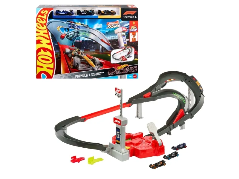 Emulate the thrilling excitement of a Formula 1 race with the Hot Wheels Racing Formula 1 Sprint Race Circuit Track Set. It includes three 1:64 scale die-cast Formula 1 cars with decos matching fan-favourite teams such as McLaren Formula 1 Team, BWT Alpine F1 Team and Visa Cash App RB Formula One Team, and two ways to play. For race mode, load the vehicles into the rev launcher and pump the lever to send them speeding onto the track. Will there be an amazing lead change as the cars get diverted into the overtake lane? In infinite mode, press the pump lever to keep cars racing around the set bypassing the diverters. Track pieces are compatible with Speed Snap Track for expanded racing and stunting. Additional track and sets sold separately. Colours and decorations may vary.Hot Wheels Racing Formula 1 Sprint Race Circuit Track Set with 3 Die-Cast Toy Cars in 1:64 Scale. Product type: Vehicle & track set, Recommended age (min): 4 yr(s), Recommended age (max): 99 yr(s), Material: Plastic, Product colour: Multicolour