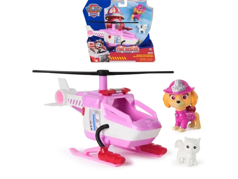 Includes: 1 Vehicle, 2 FiguresPAW Patrol Fire Rescue: Skye Rescue Fire Chopper with Action Figure, Kitty Friend & Toy Helicopter, Kids Toys for Boys & Girls Ages 3 and Up. Product type: Helicopter, Recommended age (min): 3 yr(s), Material: Plastic, Product colour: Pink, White