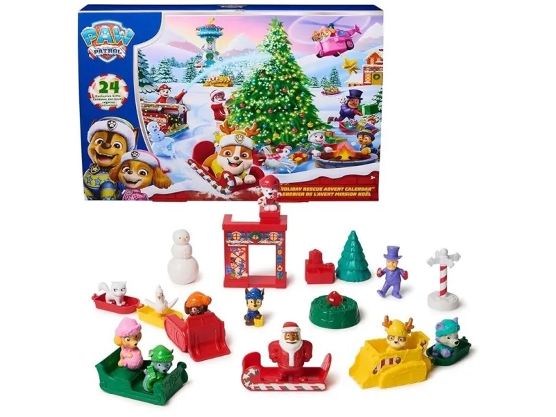 Includes: 7 Vehicles, 11 Figurines, 6 AccessoriesPAW Patrol Holiday Rescue 2025 Advent Calendar, 24 Surprise Toys - Figures, Miniature Vehicles & Accessories, Kids Toys for Boys & Girls Ages 3 and Up. Recommended age (min): 3 yr(s), Product colour: Multicolour