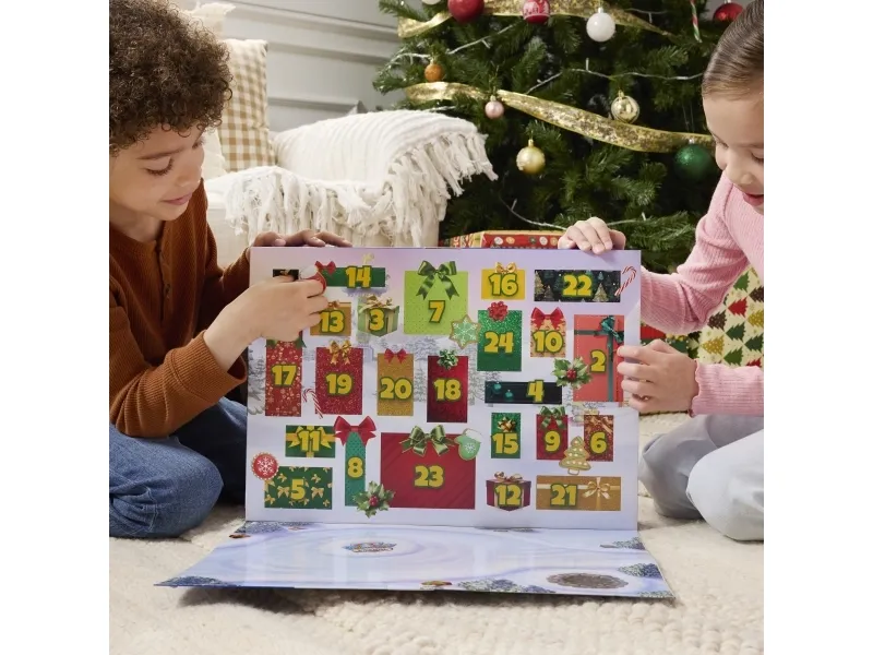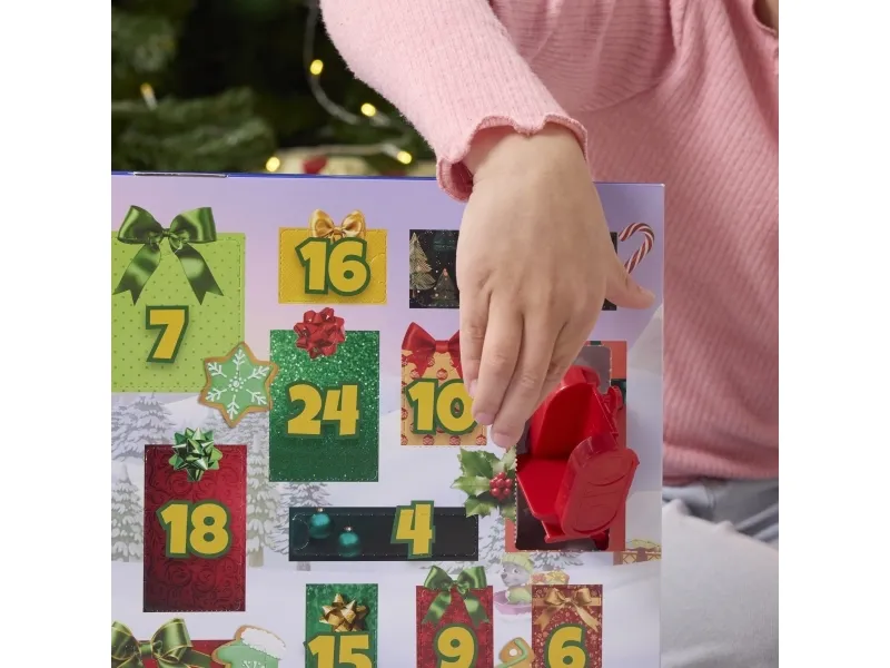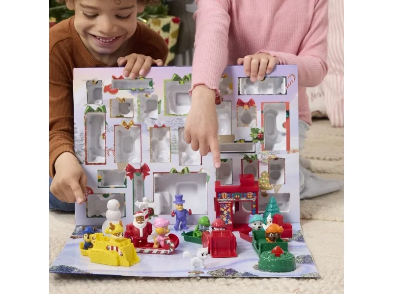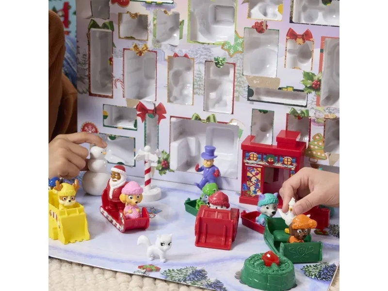 Unleash the spirit of adventure with PAW Patrol's Holiday Rescue Advent Calendar, a thrilling way to count down to the holidays with 24 surprise toys to discover. Packed with tons of fun, figures, miniature vehicles & PAWsome holiday-themed accessories, like Rubble's bulldozer, Santa's sleigh and so much more. The set features a lineup of figures such as Chase, Marshall, Skye, and even Santa Claus, along with accessories like Santa's workshop and a snowman. For added play-value, the box even transforms into a scene scape for a thrilling snow day, encouraging creativity and pretend play. PAW Patrol learning toys are PAWsome for Christmas. Relive cherished moments from past PAW Patrol seasons, like the Mighty Pups and PAW Patrol Movie, or create new adventures with a PAW Patrol tower, individual PAW Patrol action figures and their PAW Patrol vehicles, for turbo-charged adventures (each sold separately)