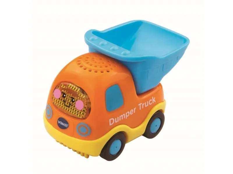 Transport playtime with the fill-and-dump Go! Go! Smart Wheels® Dump Truck! Doug the Dump Truck is just the right size for toddlers' hands and sports a friendly, light-up face button that plays three sing-along songs and six melodies. A mechanical button raises and lowers the truck bed to encourage fine motor skills through button pressing. Push the truck around to trigger fun role-play sound effects. Load up Doug the Dump Truck and let him transport your cargo on Go! Go! Smart Wheels® playsets (sold separately). Discover more phrases, songs, sounds and lights as he drives over the SmartPoint® locations.