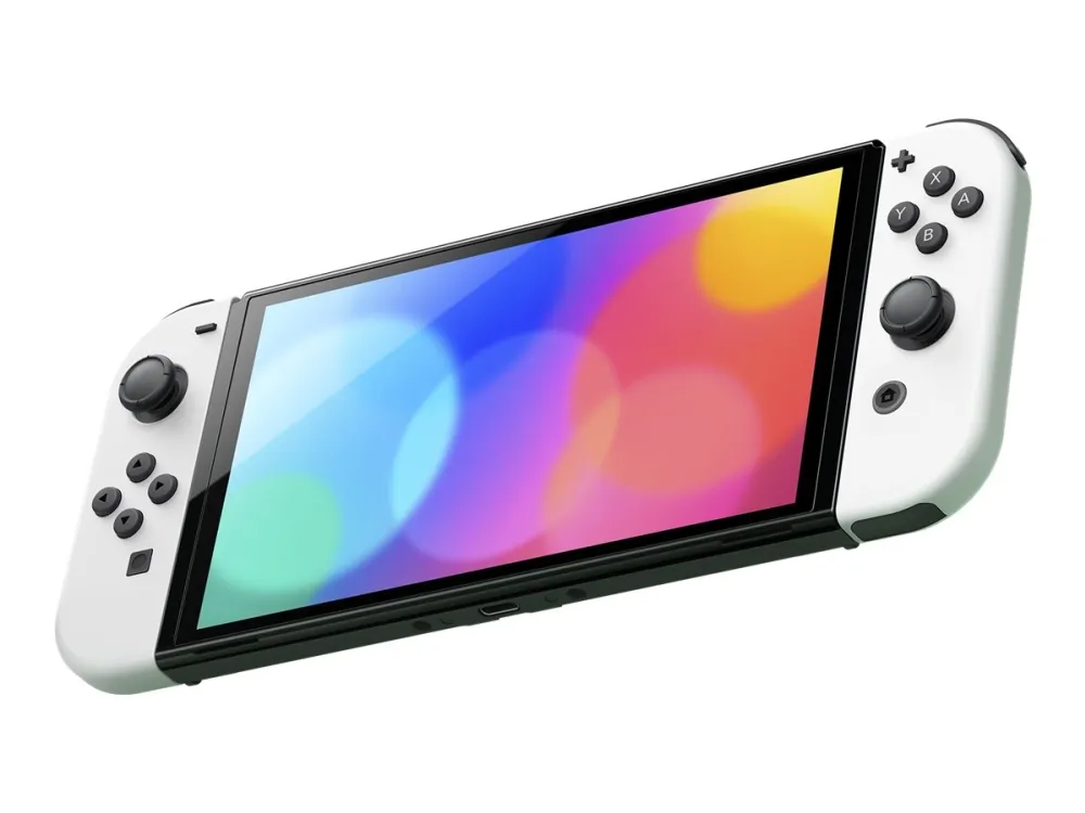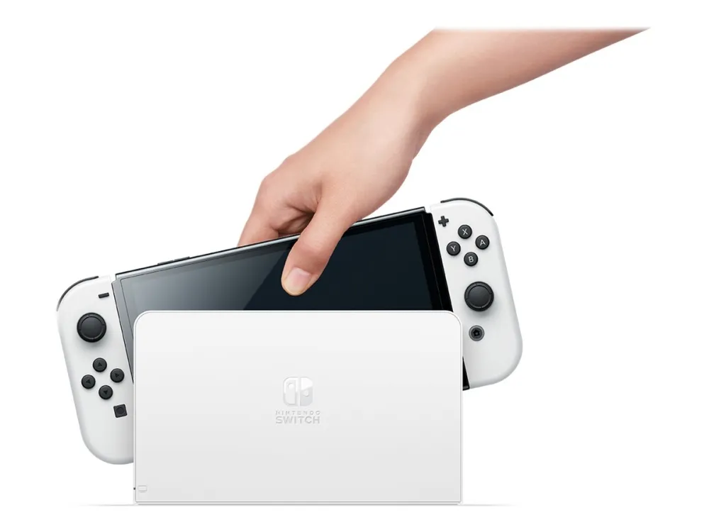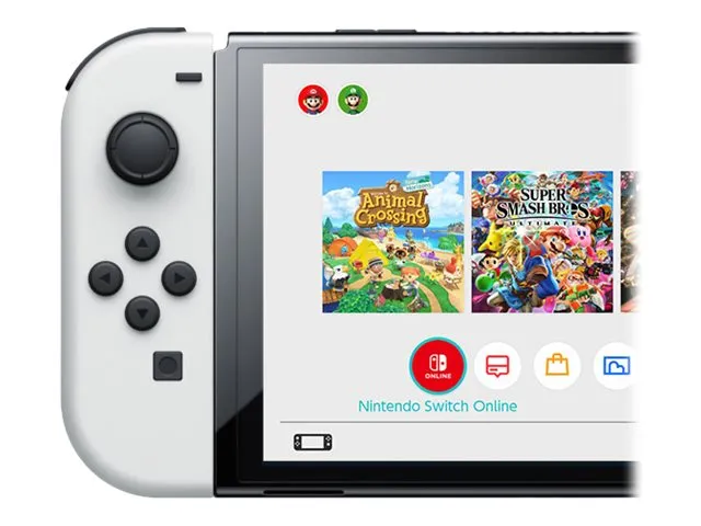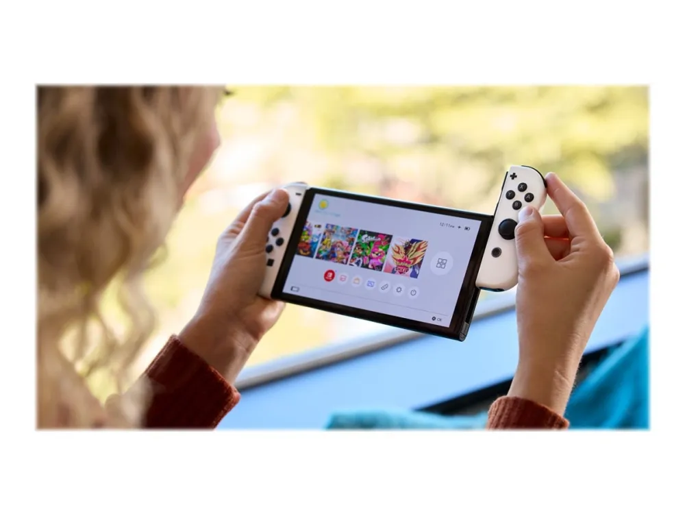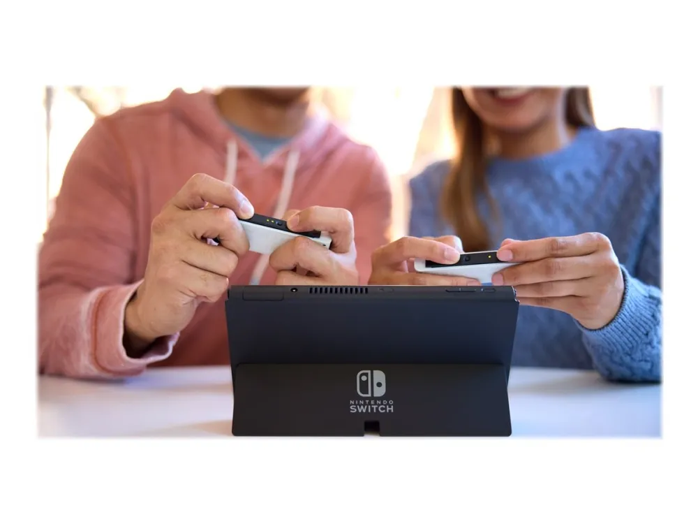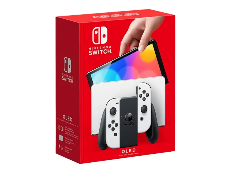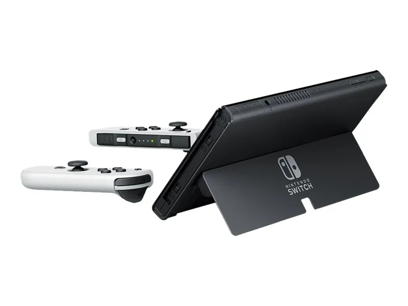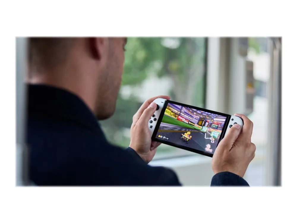 Introducing the newest member of the Nintendo Switch family Play at home on the TV or on-the-go with a vibrant 7-inch OLED screen with the Nintendo Switch™ system - OLED model. In addition to a new screen with vivid colors and sharp contrast, the Nintendo Switch - OLED model includes a wide adjustable stand for more comfortable viewing angles, a dock with a wired LAN port for TV mode (LAN cable sold separately), 64GB of internal storage, and enhanced audio in Handheld and Tabletop modes using the system’s speakers.Nintendo Switch OLED. Platform: Nintendo Switch, Processor model: NVIDIA Custom Tegra. Product colour: Black, White, Gaming control technology: Analogue / Digital, Gaming control function buttons: D-pad, Home button, Power button. Display: OLED, Display diagonal: 17.8 cm (7"), Display resolution: 1280 x 720 pixels. Storage media type: eMMC, Built-in memory capacity: 64 GB, Compatible memory cards: MicroSD (TransFlash), MicroSDHC, MicroSDXC. Wi-Fi standards: 802.11a, 802.11b, 802.11g, Wi-Fi 4 (802.11n), Wi-Fi 5 (802.11ac)