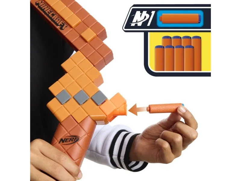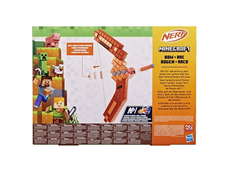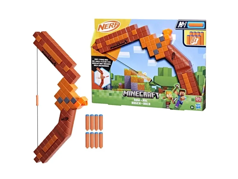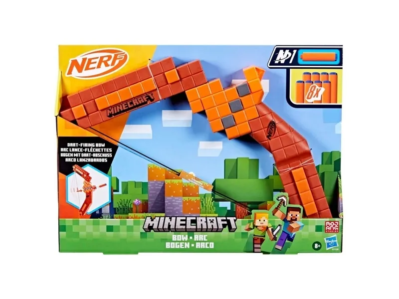Nerf and Minecraft combine to create distinctive blasters for your Nerf battles! The Nerf Minecraft Bow takes its inspiration from the bow in the popular game. Experience the long-range bow-firing action of the game in real life as you draw the string back and release it to let the dart fly! The Nerf Minecraft Bow includes 8 Official Nerf N1 darts that are designed for extreme accuracy, speed, and distance. The single-dart capacity bow, with true-to-game features, is an eye-catching addition to Minecraft collections and an incredible blaster to add to Nerf cache. The Minecraft-inspired bow is great for backyard adventures as kids imagine themselves diving into the world of Minecraft. Eyewear recommended (not included). Copyright 2025 Mojang AB. TM Microsoft Corporation. NERF and HASBRO and all related trademarks and logos are trademarks of Hasbro, Inc.