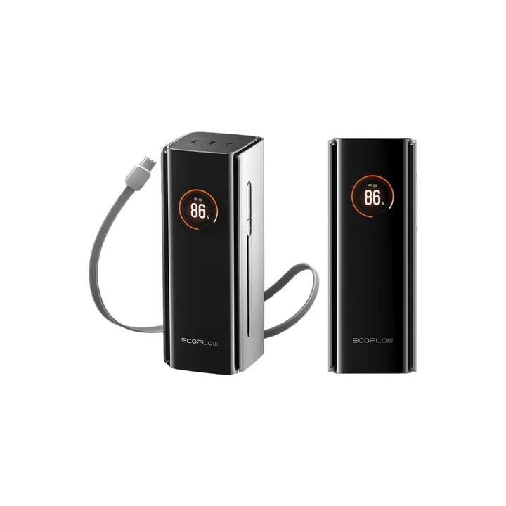 EcoFlow RAPID Pro er en kraftfuld og kompakt powerbank med 20.000 mAh kapacitet og op til 230 W samlet effekt via fire USB-C-porte. Det indbyggede 60 cm USB-C-kabel leverer 100 W – perfekt til bærbare computere – mens de øvrige porte giver fleksibilitet til flere enheder på én gang. Powerbanken oplades til 80 % på ca. 47 minutter og understøtter pass-through-opladning. LCD-skærm og app-styring giver fuld kontrol over status og opladningsstrategier. Det robuste, stænksikre og flygodkendte design gør RAPID Pro til et sikkert og pålideligt valg til rejser, arbejde og hverdag.