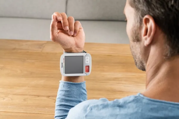ADVARSELAdvarsel om risiko for tilskadekomsteller sundhedsfareVIGTIGTSikkerhedsanvisning om mulige skaderpå apparatet/tilbehøreJævnstrømApparatet kan kun bruges medjævnstrøm.Bortskaffelse i henhold til EUdirektivetom affald fra elektrisk og elektroniskudstyr WEEE (Waste Electrical andElectronic Equipment)Batterier, der indeholder skadeligestoffer, må ikke bortskaffes medalmindeligt husholdningsaffald21PAPEmballagen skal bortskaffes påmiljøvenlig visAdvarsler og sikkerhedsanvisningerAnvisninger om brugen• Mål altid blodtrykket på samme tid af døgnet for atsikre, at værdierne kan sammenlignes.• Du bør hverken spise, drikke, ryge eller være fysiskaktiv 30 minutter før målingen.• Hvil altid i 5 minutter før den første måling af blodtrykket!• Hvis du ønsker at udføre flere målinger efter hinanden,skal du altid vente mindst 1 minut mellem hver måling.• Gentag målingen i tilfælde af tvivlsomme målinger.• De værdier, du selv finder frem til, er kun til din egenorientering – de er ingen erstatning for en lægeundersøgelse! Tal med lægen om dine måleværdier, træfikke selv medicinske beslutninger på baggrund af værdierne (f.eks. om medicin og dosering)!• Hvis blodtryksmåleren bruges uden for hjemmeteller under bevægelse (f.eks. under transport i en bil,ambulance eller helikopter eller under udøvelse af fysiske aktiviteter såsom sport) kan målenøjagtighedenblive påvirket, hvilket kan medføre målefejl.4• Anvend ikke blodtryksmåleren på nyfødte eller kvindelige patienter med svangerskabsforgiftning. Før anvendelse af blodtryksmåleren under en graviditet anbefaler vi, at du taler med din læge.• Ved nedsat blodgennemstrømning i en arm på grundaf kroniske eller akutte karsygdomme (blandt andetåreforsnævringer) er nøjagtigheden af måling på håndleddet begrænset. Vælg i så fald at måle blodtrykketmed en overarmsblodtryksmåler.• Dette apparat er ikke beregnet til at blive brugt afpersoner (herunder børn) med begrænsede fysiske,sensoriske eller mentale evner eller manglende erfaring og/eller viden, medmindre de er under opsyn afen anden person, der har ansvaret for deres sikkerhed,eller som giver dem anvisninger om, hvordan apparatet skal bruges. Børn skal være under opsyn, så deikke leger med apparatet.• Sygdomme i hjertekredsløbssystemet kan medførefejlmålinger eller forringelser af målenøjagtigheden.Det samme gælder meget lavt blodtryk, diabetes,blodomløbs og rytmeforstyrrelser samt kuldegysninger eller rystelser.• Blodtryksmåleren må ikke anvendes sammen med ethøjfrekvent kirurgisk apparat.• Anvend kun apparatet til personer med et håndlAnvisninger om opbevaring og vedligeholdelse• Blodtryksmåleren består af præcisionskomponenterog elektronikkomponenter. Måleværdiernes nøjagtighed og apparatets levetid afhænger af, om apparatetbehandles korrekt:– Beskyt apparatet mod stød, fugt, snavs, kraftigetemperatursvingninger og direkte sollys.– Tab ikke apparatet.– Benyt ikke apparatet i nærheden af kraftige elektromagnetiske felter, og hold det på afstand af radioudstyr og mobiltelefoner.• Hvis apparatet ikke skal bruges i længere tid, anbefales det at tage batterierne ud.Anvisninger vedrørende batterierne i apparatet• Hvis væske fra batterierne kommer i berøring med dinhud eller øjne, skal du vaske grundigt efter med vandog søge lægehjælp.• Fare for kvælning! Småbørn kan sluge batterierog blive kvalt. Batterierne skal derfor opbevares utilgængeligt for småbørn!• Bemærk poltegnene plus (+) og minus ().• Hvis et batteri lækker, skal du tage beskyttelseshandsker på og rengøre batterirummet med en tør klud.• Beskyt batterierne mod kraftig varme.• Eksplosionsfare! Kast aldrig batterier ind i ild.• Batterierne må ikke oplades eller kortsluttes.• Batterierne skal tages ud af batterirummet, hvis apparatet ligger ubenyttet hen igennem længere tid.• Anvend kun den samme eller en tilsvarende batteritype.• Skift altid alle batterier samtidigt.• Anvend ikke genopladelige batterier!• Batterier må aldrig skilles ad, åbnes eller knuses.Anvisninger vedrørende elektromagnetiskkompatibilitet• Apparatet egner sig til brug i alle omgivelser, der eranført i denne betjeningsvejledning, herunder også private boliger• I nærheden af elektromagnetisk interferens kan apparatets funktion være nedsat. Dette kan eksempelvisforårsage fejlmeddelelser eller manglende skærm/apparatfunktion.• Dette apparat bør ikke anvendes lige ved siden afandre apparater eller stablet med andre apparater, dadet kan forårsage forstyrrelser af og fejl i forbindelsemed brugen af apparatet. Hvis det er nødvendigt atanvende apparatet på ovenstående måde, skal detteapparat og de andre apparater overvåges for at sikre,at de fungerer korrekt.Brug af andet tilbehør end det, som producenten afdette apparat har fastlagt eller leveret, kan forårsageøget udsendelse af elektrisk interferens eller forringeapparatets elektromagnetiske immunitet, og det kanmedføre forstyrrelser af eller fejl i forbindelse med brugen af apparatet.• Manglende overholdelse heraf kan forårsage en forringelse af apparatets funktionsegenskaber