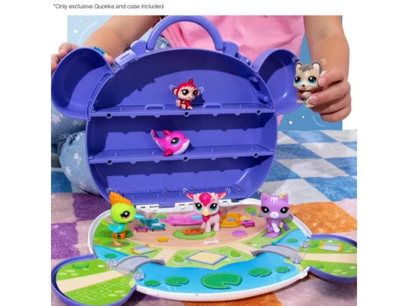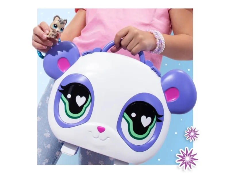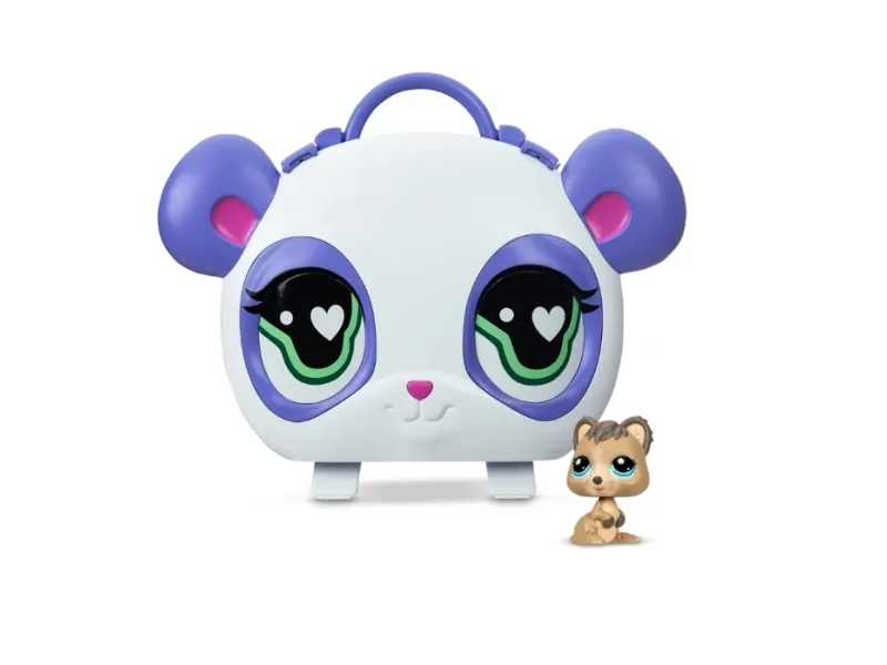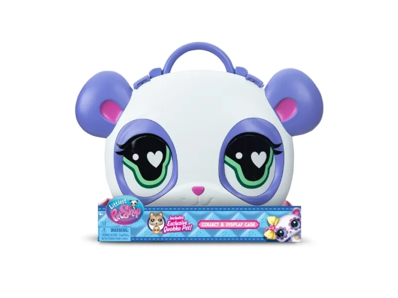 Bring the world of Littlest Pet Shop with you—wherever you go! The Collect & Display Case is the ultimate storage, display, and play solution for LPS fans. Styled after the Littlest Pet Shop Panda mascot, this adorable case opens up to reveal tiered display shelves and a fold-out play scene so your pets can hang out in style. Inside, you’ll discover 1 exclusive bobblin’ pet—the brand-new Quokka, making its Littlest Pet Shop debut! You’ll also get a collector card with your pet’s personality, rarity, and level. Fill the case with your growing collection—there’s room for 19+ pets inside! Whether you're posing pets on shelves, playing out scenes on the mat, or packing it up to take on the go, this carry case is a must-have for collectors and kids