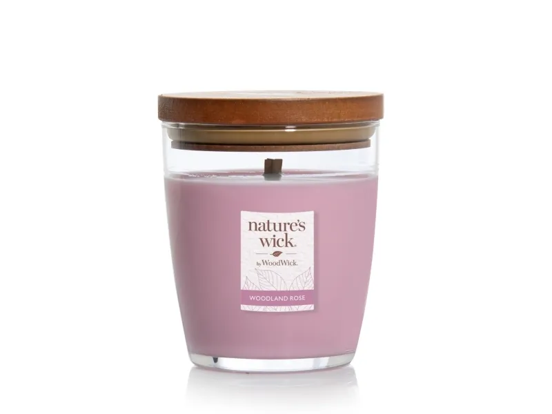 WoodWick Nature's Wick Woodland Rose Średnia | Świeca zapachowa | 1 drewniany knot, 284g