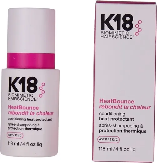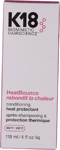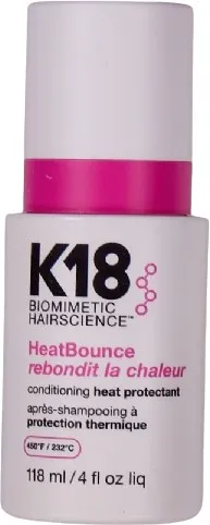 | K18 HeatBounce * Protects against heat up to 232°C * Reduces hair breakage by up to 85% * Prevents frizz, UV damage and colour fading * Weightless, moisturising formula – without weighing hair down * Strengthens hair right down to the core * Suitable for all hair types and textures |