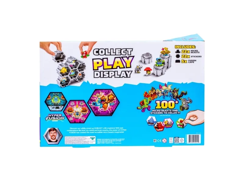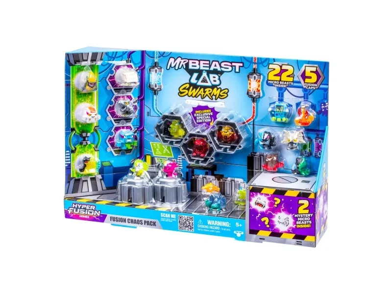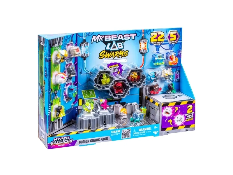 MrBeast Lab Hyper Fusion Swarms. Collect 100+ Unique Hyper Fusion Swarms! Fusion Chaos Pack Includes 22 Micro Beasts, 22 Collectible Stickers & 5 Fusion Caps To Build Out Your Own MrBeast Lab. 5+ years