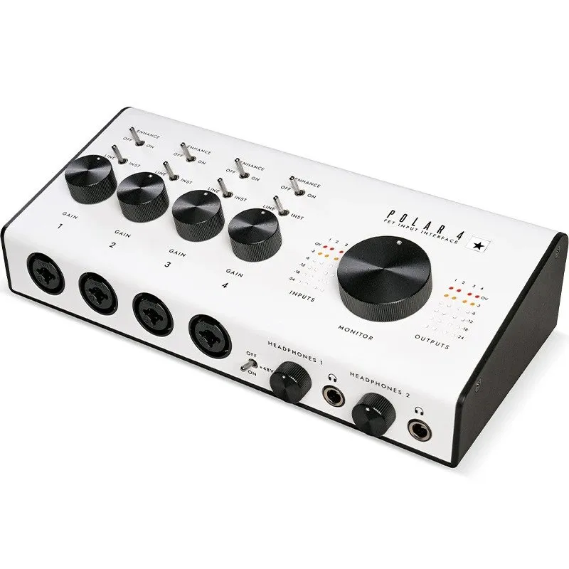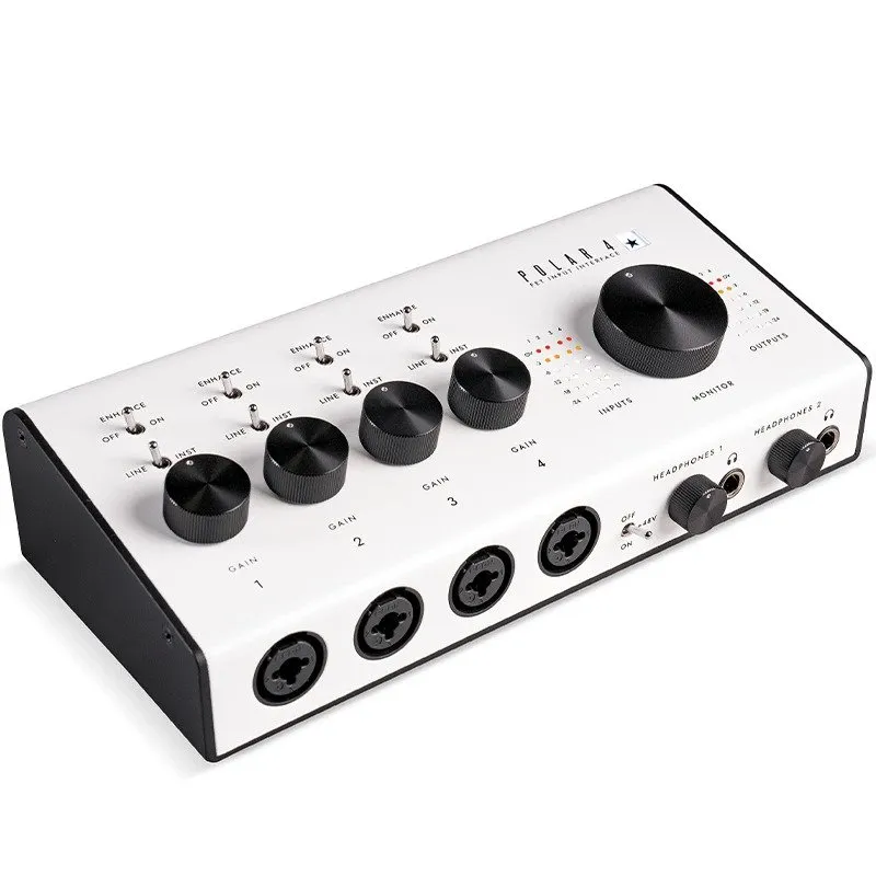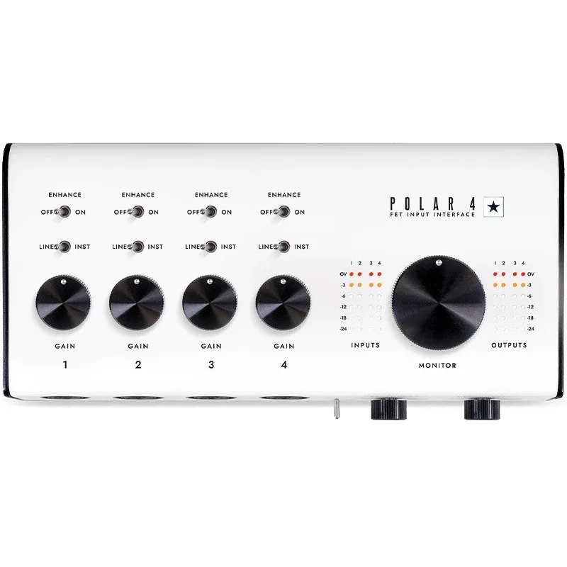 Det har 4 high headroom FET-indgangskanaler til instrument, line og mikrofon, en hovedtelefonforstærker med høj output, +48V fantomstrøm til kondensatormikrofoner, balancerede udgange til professionel monitorering, visuelle niveaumålere og den proprietære "Enhance"-knap. POLAR leveres med studiesoftwaresamlingen, inklusive den komplette St. James Plugin Suite og alt hvad du behøver for at begynde at optage nu!