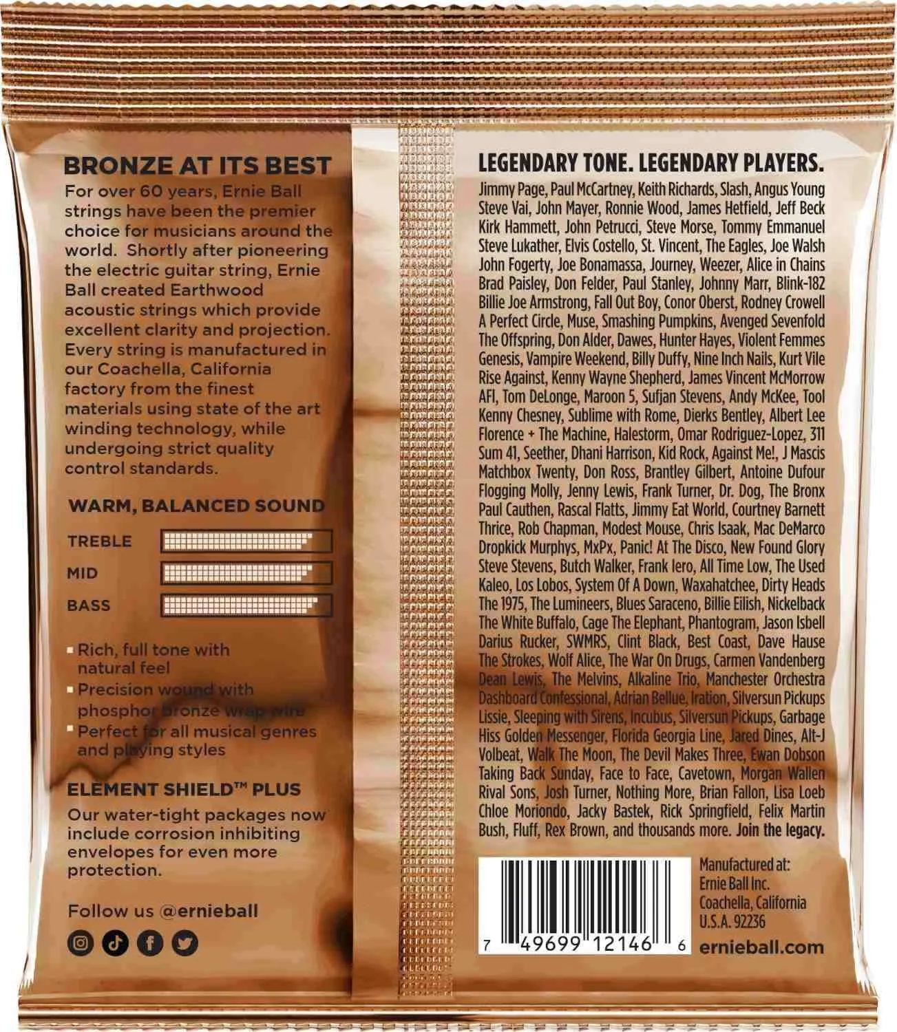 Ernie Ball 2146 Earthwood Phosphor Bronze Medium Light - Stål Strenge til Akustisk Guitar