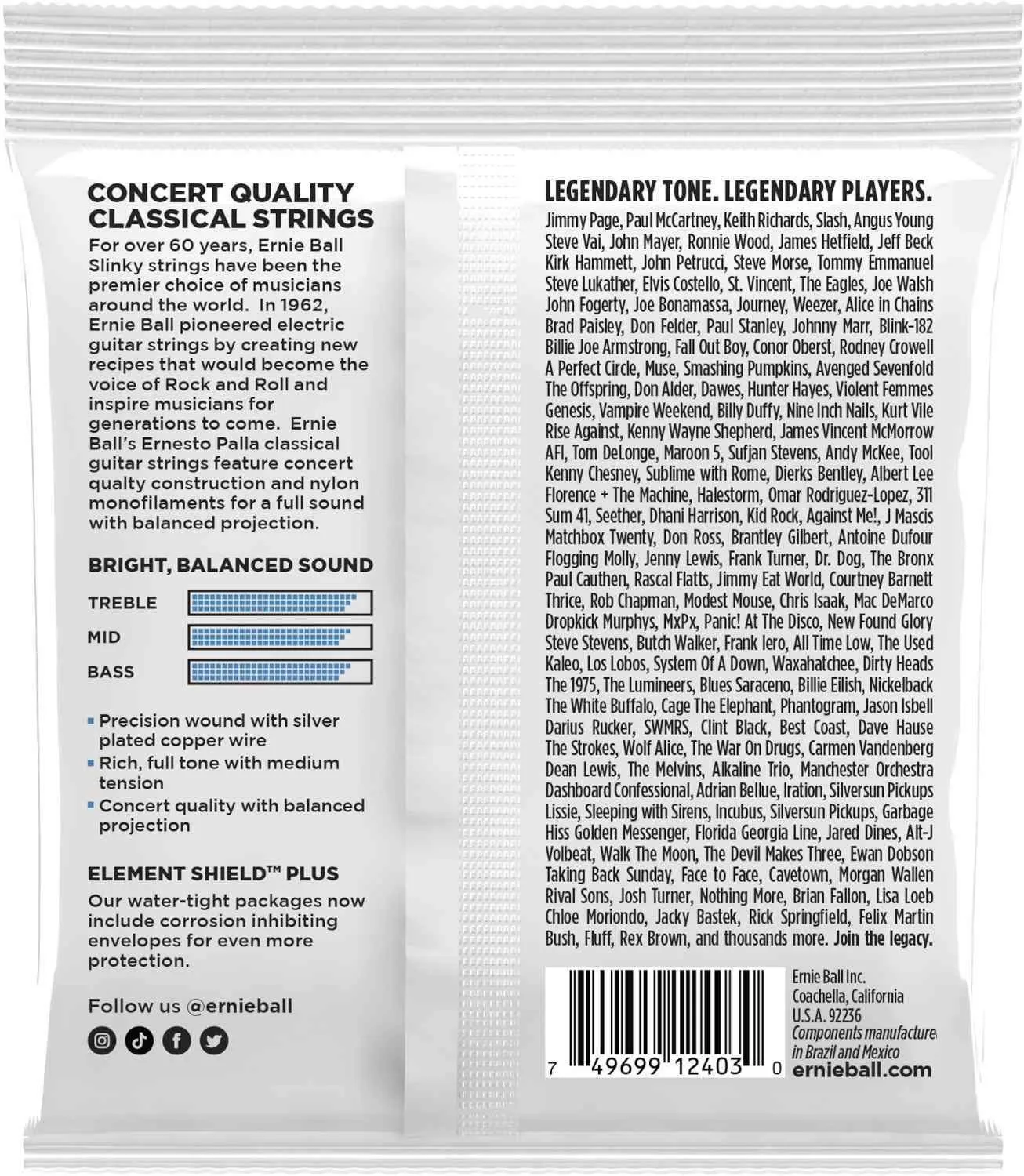 Alle Ernie Ball-strenge er præcisionsfremstillet efter de højeste standarder og de mest krævende specifikationer for at sikre ensartethed, optimal ydeevne og lang levetid.
