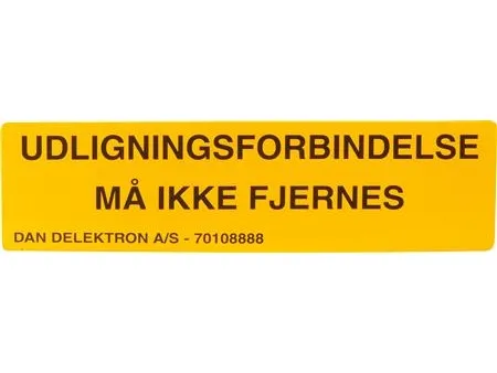 DAN-DELEKTRON Skilt 28mm x 100mm med klæbTekst: Udligningsforbindelse må ikke fjernes