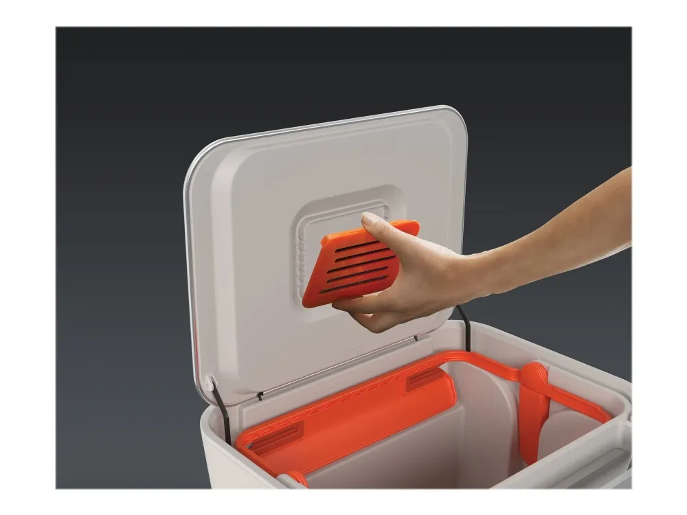 Titan 30 is an innovative waste solution with an hygienic compaction system. This allows it to hold more waste than a similar-sized household bin. Compacting your rubbish means you empty your bin less often and use fewer liners.