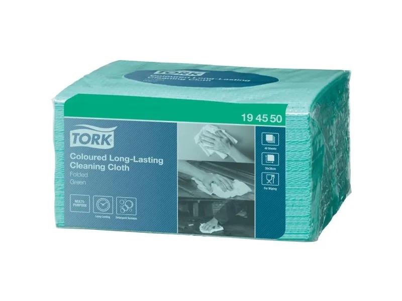 A durable and absorbent cleaning cloth that can be used repeatedly without tearing. It is available in four colours to help prevent cross-contamination.