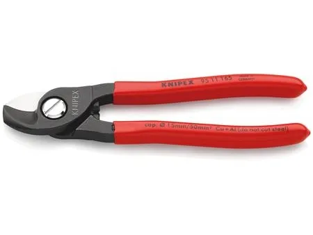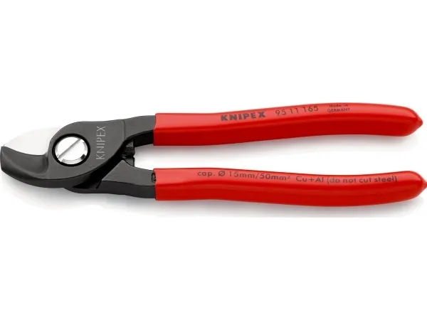 - for cutting copper and aluminium single conductors as well as multiple stranded cables - not suitable for steel wire and hard drawn copper conductors - precision ground, hardened blades - clean and smooth cut without crushing and deformation - easy cutting with one-hand operation - guard prevents operators’ fingers being pinched - adjustable bolted joint, self-retaining screw - High-grade special tool steel, forged, oil-hardened