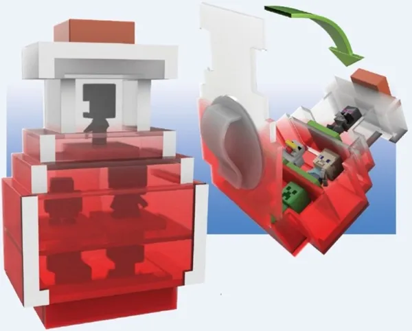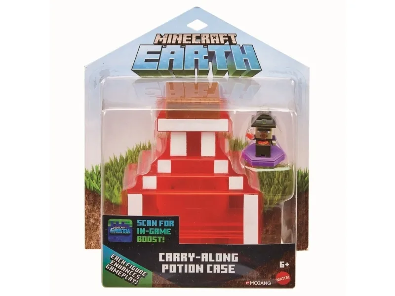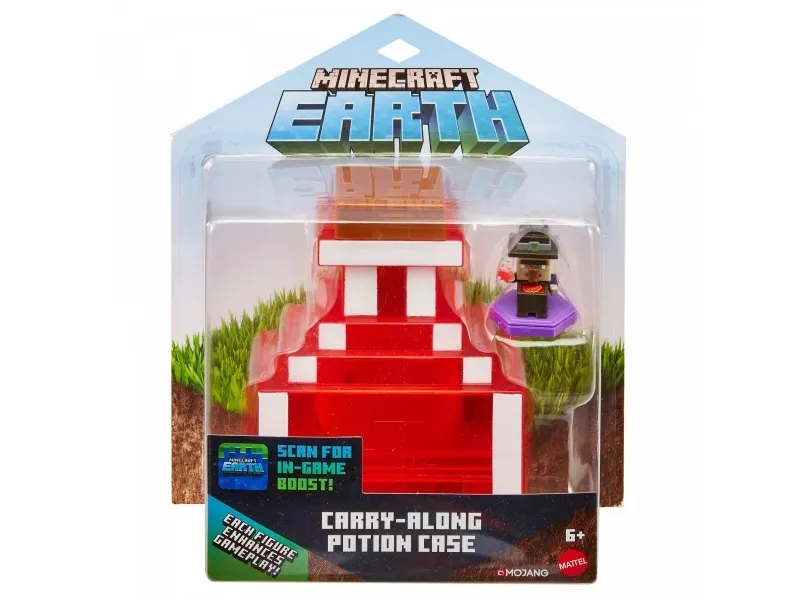 Now you can store and carry the perfect collection of Minecraft Boost Mini Figures in an exciting new case! Shaped like in-game potion, the Minecraft Carry-Along Potion is the perfect case to hold, display, and carry up to 5 Boost Mini Figures, including our classic Mini Figures that sit right on the shelf. And Boost Minis—NFC-enabled Mini Figures that unlock a temporary boost for your character in the Minecraft augmented reality Earth mobile game—slide right into place in the case’s designated grooves. Minecraft fans will be proud to display all their Minis in this versatile display case that clips easily onto a belt, a pocket, or a backpack! Rotate the cap to lock and unlock the potion pack. A great gift for Minecraft fans. Case comes with an exclusive Potion-Brewing Witch Boost Mini Figure! Colors and decorations may vary. Other Mini Figures sold separately.