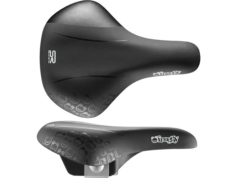 The black Selle Royal Froggy unisex saddle is suitable for children's bicycles up to 24 inches. With integrated clip system for easy attachment to the seat post. The Soft Touch saddle cover is comfortable. Size of the saddle is 250x152 millimetres. Suitable for children's bicycles up to 24 inches Integrated clip system Soft touch saddle padSelle Royal 5310560. Product type: Bicycle saddle, Suitable for: Men, Product colour: Black. Country of origin: Italy