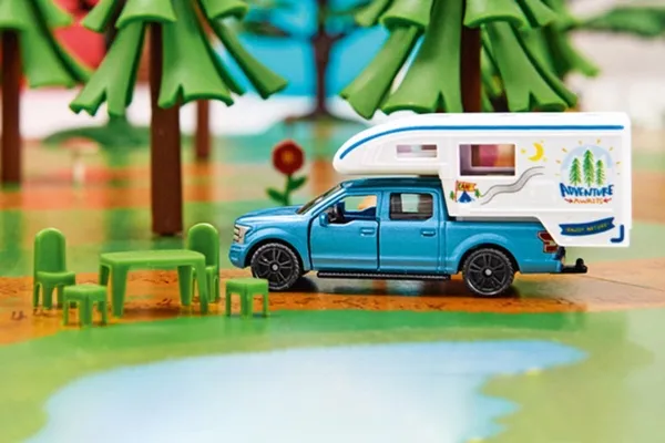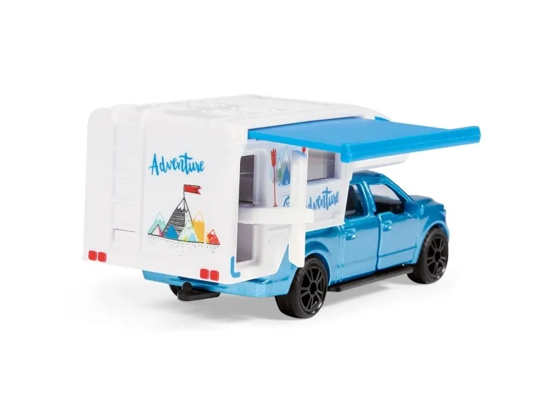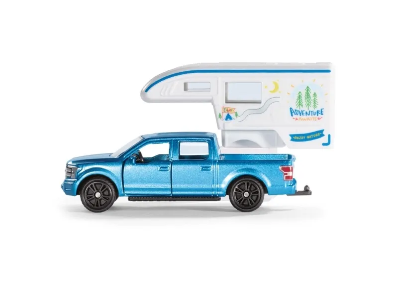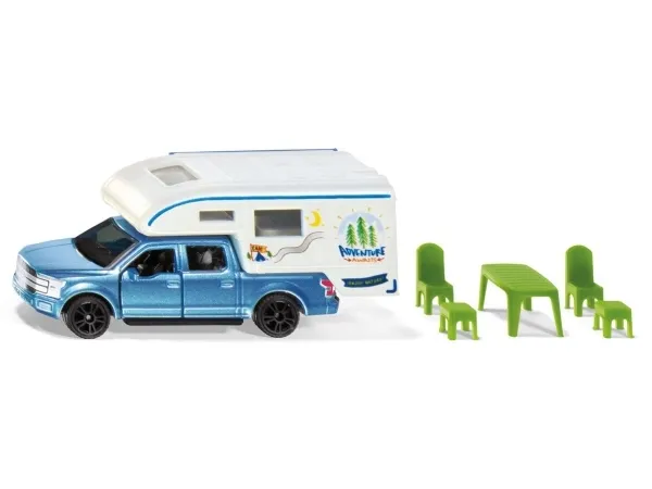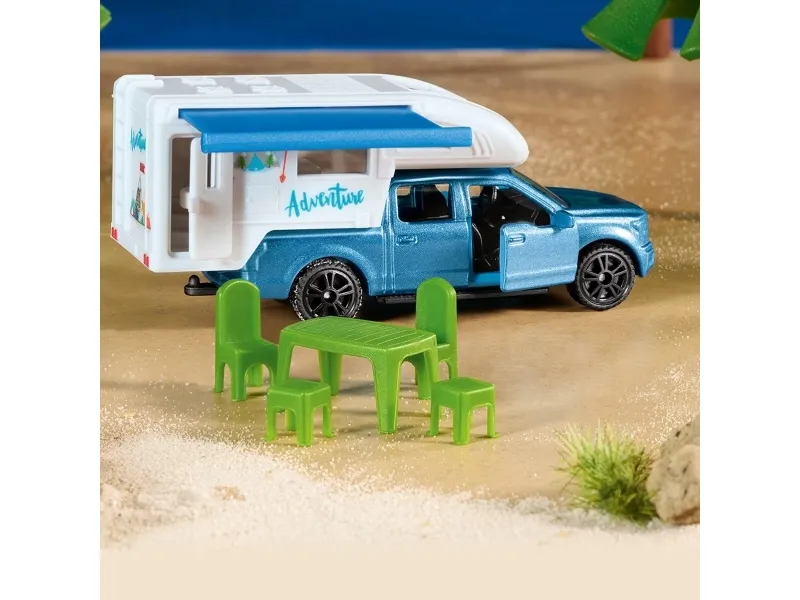 Camping in the wild with the offroader - The Ford F150 is the best-selling vehicle in the USA. The pickup is a cult in the USA, especially with the big V8 engine. The Ford F150 is a family vehicle, workhorse, tractor, and camping van all in one. The camper shell is easy to install for a weekend offroad trip. Open the door to the shell, extend the awning, and with two chairs, two stools, and a table, everything is ready for an outdoor barbecue.