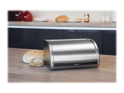 Keep your bread handy and fresh in this medium-sized Brabantia Roll Top Bread Bin. This compact and classy bread bin happily holds up to one loaf or anything else you want to store. The lid has a large grip for easy opening and slides smoothly into the back of the bin. To top it off, this bread bin has a partially flat top to put your canisters on. A space-saving and stylish addition to your kitchen!