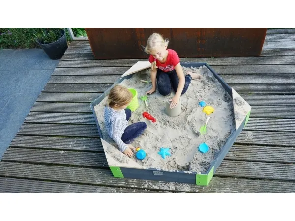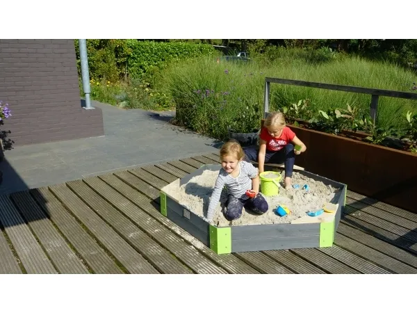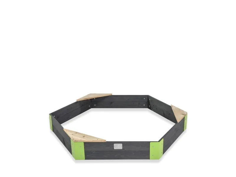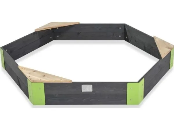 The EXIT Aksent wooden sandpit is a sandpit in the shape of a hexagon. The sandpit has three wooden seats, so that you won’t become completely covered in sand while playing in it and at the same time offers enough room to have great fun playing together with friends.