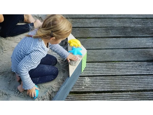 The Aksent sand pits from EXIT Toys are made of FSC® certified cedar wood (FSC 100%, SCS-COC-000652-WH). This kind of wood is free of splinters and has a natural resistance against weather conditions like rain, which in turn also makes it resistant to rot. You don’t need to apply any kind of special treatment to the EXIT wooden sandpits before use, which means that children can safely play in them straight away.