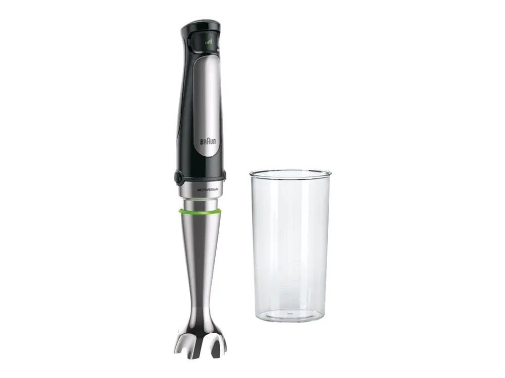The new Braun MultiQuick 7 hand blender is designed to help you make healthy meals for your family and friends - fast and easy. It now features world's first ACTIVEBlade technology. This innovative flexible shaft gives you 250 % more active cutting surface to work with - a clever kitchen helper so you can get the job done easily. It also features Braun's new Easy SmartSpeed technology, which puts you in control with just one touch. Simply apply pressure on the control button to adjust the power intuitively and without interruption.