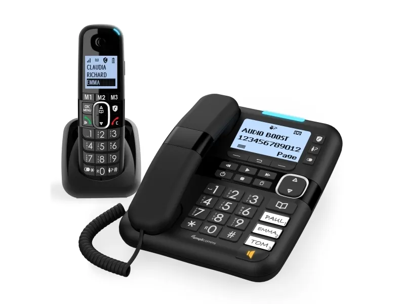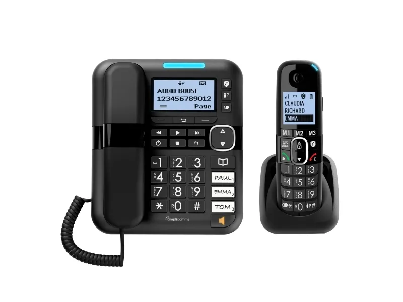 Med/uden ledning besvarelsessystem med opkalds-ID + ekstra telefonrør