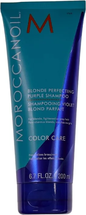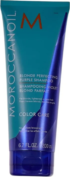 Massage through wet hair and scalp. Leave on for 3–5 minutes. Rinse well. Follow with Moroccanoil Blonde Perfecting Purple Conditioner