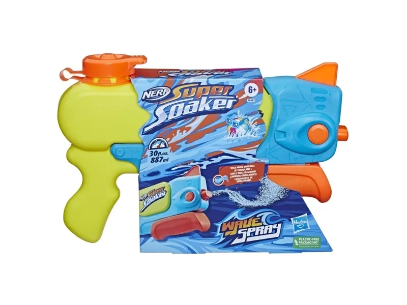 Product type- Toy water sprayer. Brand- Hasbro Nerf Super Soaker. Article- F6397. Colour- Yellow. Material- Plastic. Caution for Toys- Not suitable for children under 3 years old., Remove all packaging and fasteners before passing this toy on to a child. It is recommended to keep the information on the packaging. Recommended for use under adult supervision. There may be small or sharp parts that could choke or injure the child.. Recommended age from- 6 y.
